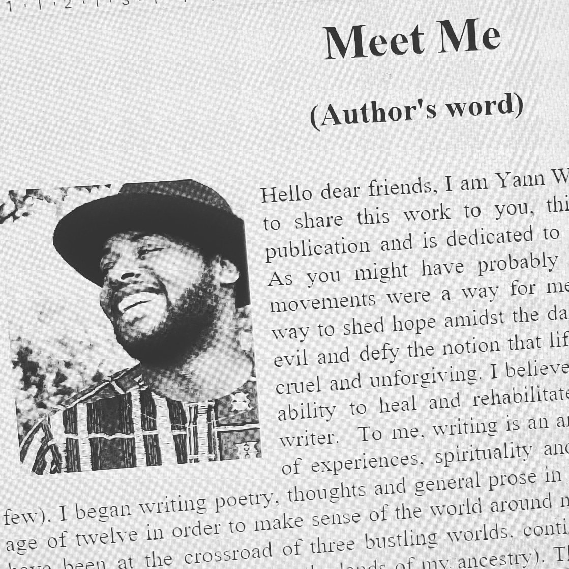 Yann began writing poetry, thoughts and general prose in French, (his first language), at the age of twelve in order to make sense of the world around him. Ever since he can remember, he has been at the crossroad of three bustling worlds, continents and cultures: (West Africa, Europe and the Middle East – the lands of his ancestry). This wealth of colour, spontaneity, shades, aromas, conceptions and cultures all fused into one to shape his philosophy of life and distinctive style of writing.